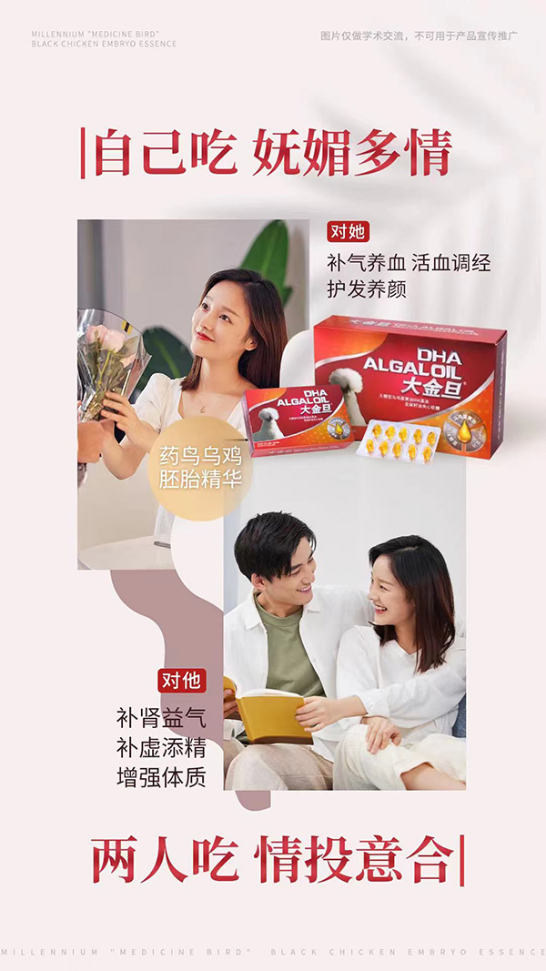 大金旦無(wú)糖型烏雞蛋黃油DHA藻油亞麻籽油夾心軟糖,以千年“藥鳥(niǎo)”烏雞胚胎精華、馬泰克藻油DHA、亞麻油OMEGA-3為主要成分。其所含的營(yíng)養(yǎng)成分,對(duì)女性具有補(bǔ)氣養(yǎng)血、活血調(diào)經(jīng)、護(hù)發(fā)養(yǎng)顏之益處;對(duì)男性具有補(bǔ)腎益氣、補(bǔ)虛添精、增強(qiáng)體質(zhì)之益處。均衡補(bǔ)充,呵護(hù)健康,無(wú)糖型夾心軟糖設(shè)計(jì),口感更佳。