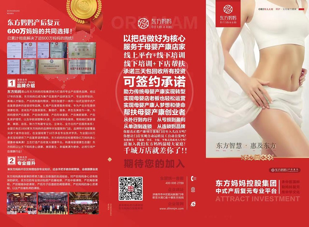 東方媽媽,中式產(chǎn)后復(fù)元專業(yè)平臺(tái),多年來始終肩負(fù)“承中醫(yī)國(guó)粹、助媽媽復(fù)元、傳中華文化”之使命,立志讓天下媽媽身心健康、美麗重生、幸福美滿!同時(shí)更幫助萬千門店持續(xù)盈利,讓萬千合作伙伴成就美好生活!