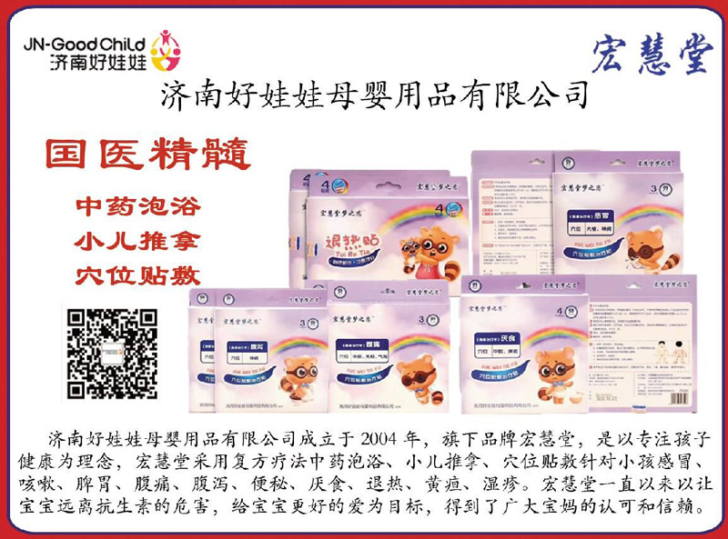 濟(jì)南好娃娃母嬰用品有限公司成立于2004年,旗下品牌宏慧堂,是以專注孩子健康理念,宏慧堂采用復(fù)方療法中藥泡浴、小兒推拿。穴位貼敷針對小兒感冒、咳嗽、脾胃、腹痛、腹瀉、便秘、厭食、退熱、黃疸、濕疹。宏慧堂一直以來以讓寶寶遠(yuǎn)離抗生素的危害,為寶寶更好的愛為目標(biāo),得到了廣大寶媽的認(rèn)可和信賴!