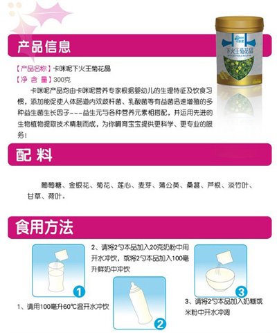 卡咪呢小兒板藍(lán)根顆粒是上?ㄟ淠啬笅胗闷酚邢薰酒煜庐a(chǎn)品,專為嬰幼兒設(shè)計,專業(yè)、安全,幫助寶寶可以預(yù)防感冒抵抗病毒,是廣大父母育兒的好幫手。卡咪呢小兒板藍(lán)根顆粒不含任何色素、防腐劑,安全放心。