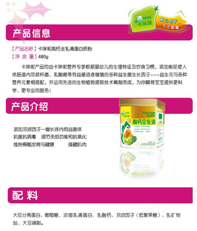 蛋白質(zhì)是人體重要營養(yǎng)素,也是多的營養(yǎng)素之一,是一切生命的物質(zhì)基礎(chǔ),可以保證機(jī)體的生長、發(fā)育、繁殖、遺傳及修補(bǔ)損傷的組織。上海卡咪呢母嬰用品有限公司是專業(yè)的母嬰營養(yǎng)品企業(yè),針對中國孕嬰童體質(zhì)推出了卡咪呢蛋白質(zhì)粉系列產(chǎn)品,現(xiàn)面向全國招商。