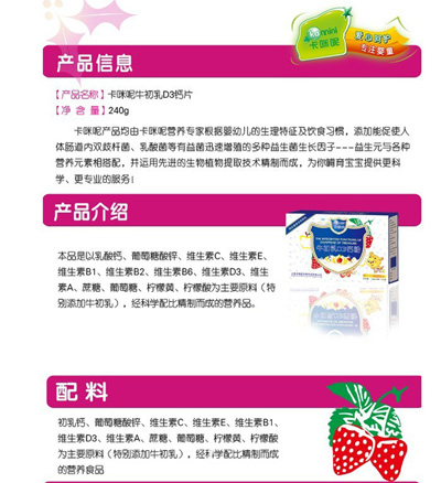 卡咪呢乳清蛋白嬰幼兒營(yíng)養(yǎng)米粉是上?ㄟ淠啬笅胗闷酚邢薰酒煜庐a(chǎn)品,精選優(yōu)質(zhì)大米制作,特別添加乳清蛋白和益生元,提高寶寶抵抗力,促進(jìn)寶寶changdao的消化吸收,上市以來廣受父母消費(fèi)者的青睞。