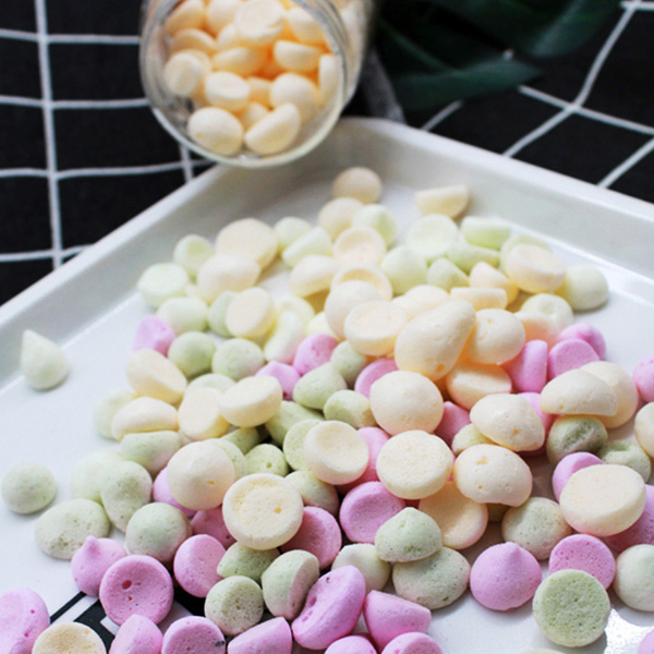 溶豆是一款兒童輔食新品類。它主要是由天然水果原漿及進(jìn)口酸奶,運(yùn)用先進(jìn)的技術(shù)制作而成的。適合于六個(gè)月歲以上的寶寶食用。因?yàn)槿芏谷肟诩椿,特別適合咀嚼功能還很弱的小寶寶食用,同時(shí)可以鍛煉小寶寶抓握食物的能力。