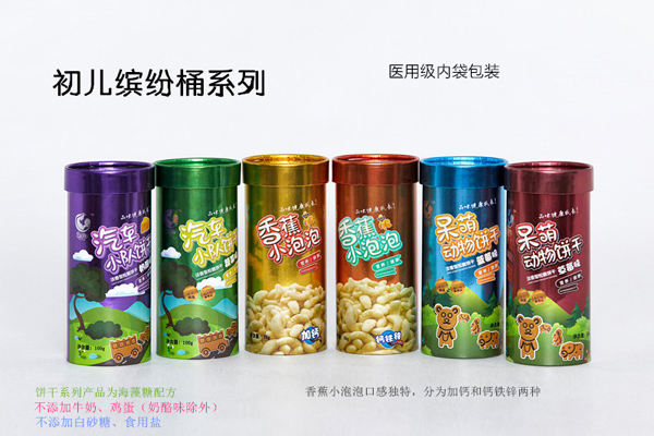 初兒繽紛桶兒童餅干有汽車小隊(duì)餅干、呆萌動(dòng)物餅干以及香蕉小泡泡三種,精選天然優(yōu)質(zhì)原料,源頭把控,品質(zhì)過硬,獨(dú)特海藻糖配方,營養(yǎng)美味又護(hù)齒。