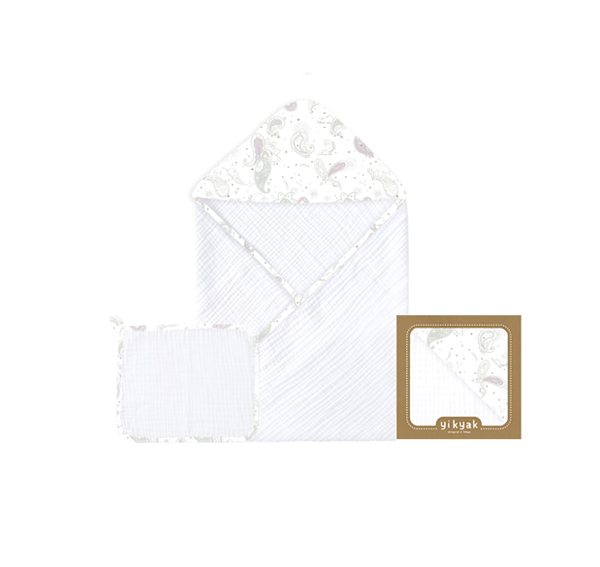 • yikyak一體密織紗布連帽浴巾 浪漫滿屋(綠紫)