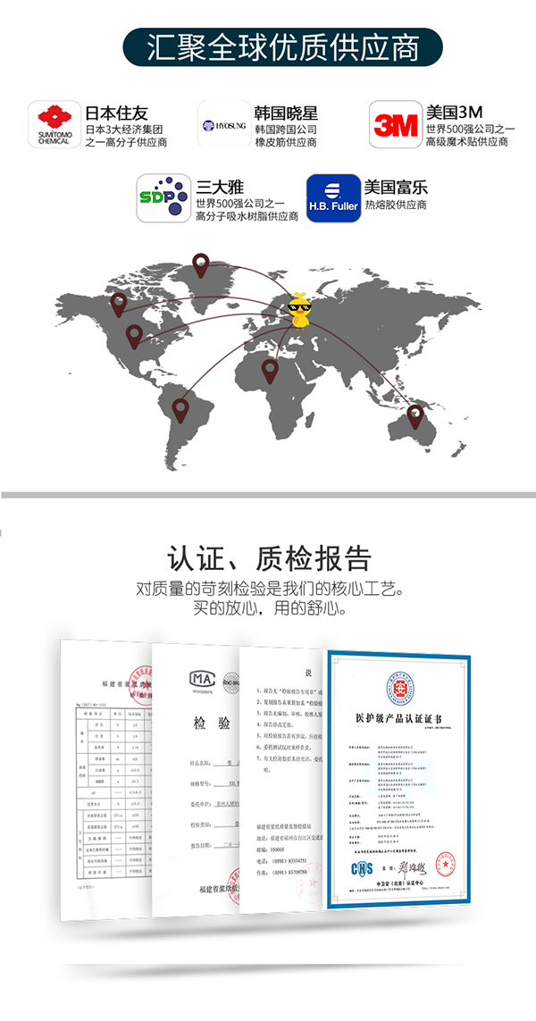 底膜采用柔軟的熱風面料,膜上有上千萬個透氣孔,讓屁屁保持暢爽