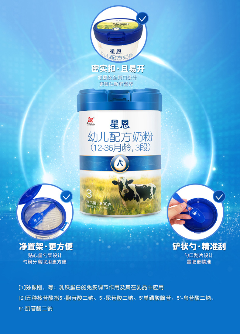 輝山星恩嬰兒奶粉,精選奶源,源頭把控,工藝鎖留,確保奶粉新鮮品質(zhì)。生牛乳入料,并添加了DHA、ARA、益生元、;撬岬,科學(xué)配比,滿足成長(zhǎng)階段的營(yíng)養(yǎng)需求。奶香純正,口感細(xì)膩,易消化,好吸收。