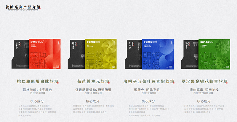 pandalulu產品理念:解構中醫(yī)組方,精準匹配當下國人保養(yǎng)需求,匯集全國優(yōu)秀原廠地食材,采用前沿生物科技,打造集美感、新鮮感、文化感健康食品,引領東方健康時尚。