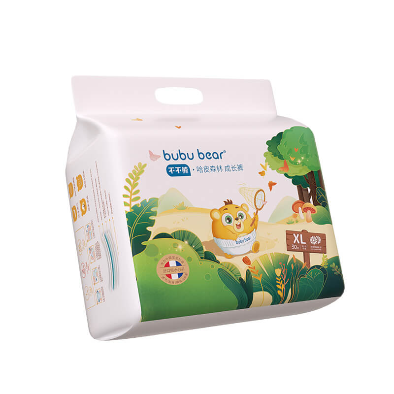 面層直接與寶寶嬌嫩皮膚接觸,熱風(fēng)無紡布具有蓬松、柔軟且較好的親水性等優(yōu)勢,保證面層的液體吸收率高且回滲少,從而達到液體接觸皮膚表面的時間短、干爽、舒適。