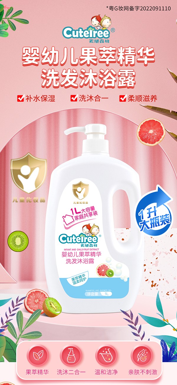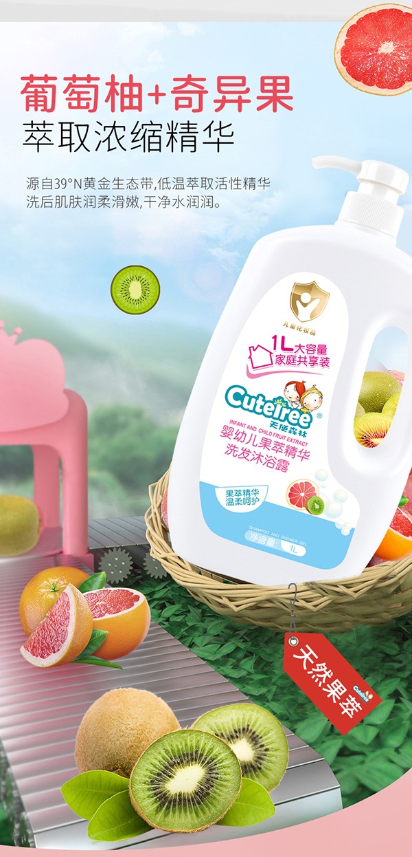 天使森林嬰幼兒果萃精華洗發(fā)沐浴露 1L