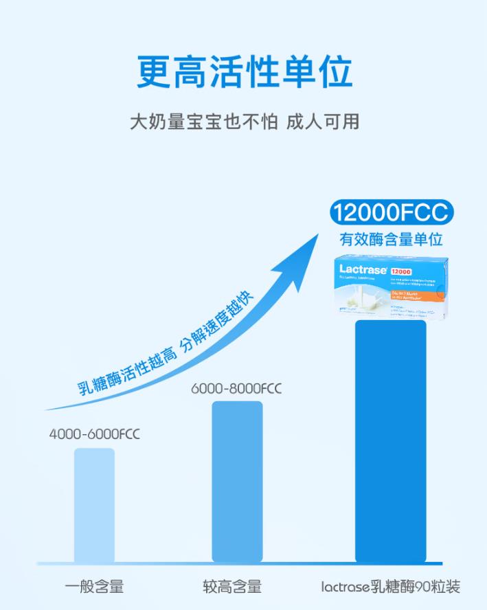 樂迪士乳糖酶,采用植物源性乳糖酶,耐胃酸能力遠(yuǎn)遠(yuǎn)超過動物源乳糖酶,健康更高效。12000FCC高活性,成分簡單,不含葡萄糖/乳清蛋白等成分,植物提取,高活性,耐胃酸。