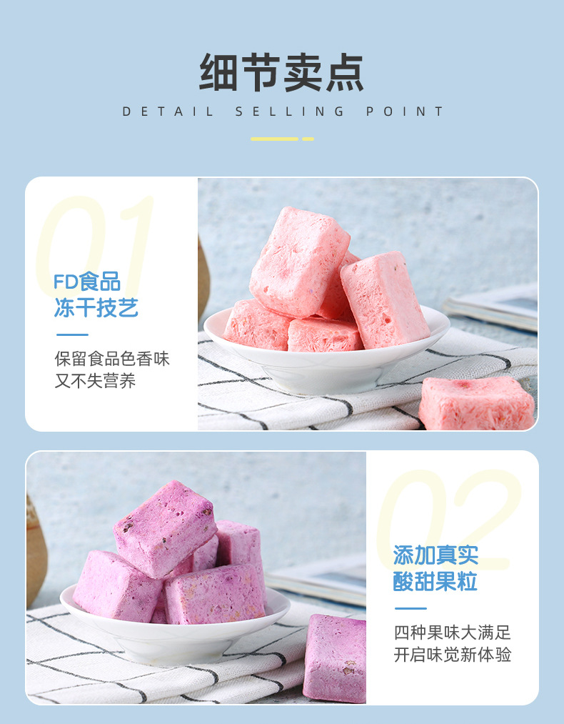 • OEM貼牌沖泡凍干酸奶塊1.2g/塊果粒益生菌塊即食代加工口味定制