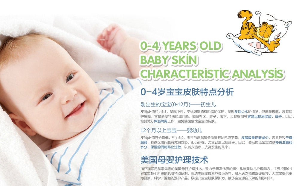 加菲貓品牌一直秉承“樂享加菲,自然有愛”是理念,給予寶寶最安全可靠而自然純正的呵護。