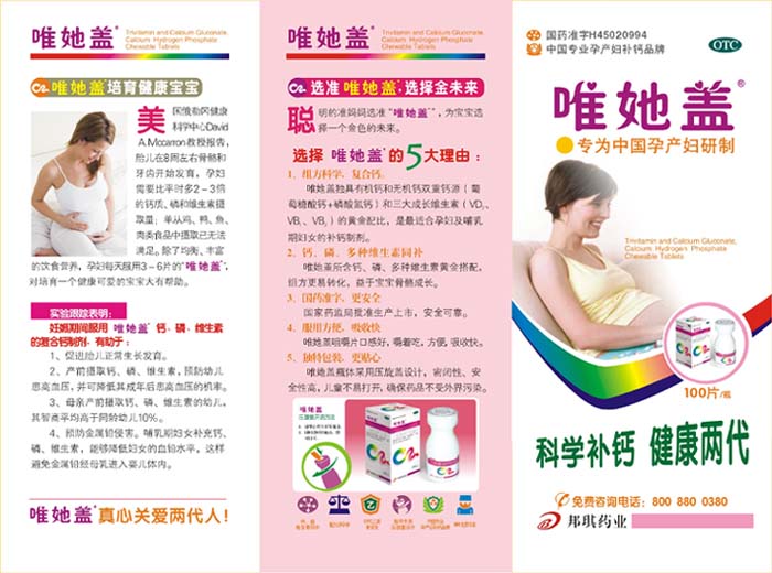 唯她蓋三維葡磷鈣咀嚼片是經(jīng)國家藥監(jiān)局批準上市,安全可靠,而且它口感好,嚼著吃很方便,同時還具有吸收快的特點,是孕婦和哺乳期婦女們理想的營養(yǎng)食品。