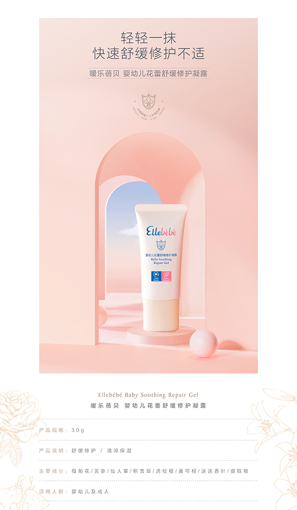Ellebébé 噯樂蓓貝源自法國,聯(lián)合法國Dermscan植物護膚研究室,潛心研究嬰幼兒肌膚成長特點,從法國皇室古籍中獲取靈感,歷時5年傾心研發(fā),甄選源自法國皇室的ILR-Florex三色花精粹搭配棉籽精華,將珍稀植物的天然育膚力發(fā)揮到極致,結(jié)合法式美育藝術(shù)設(shè)計,溫和滋養(yǎng),全方位奢寵,保護寶貝的嬌嫩肌膚。