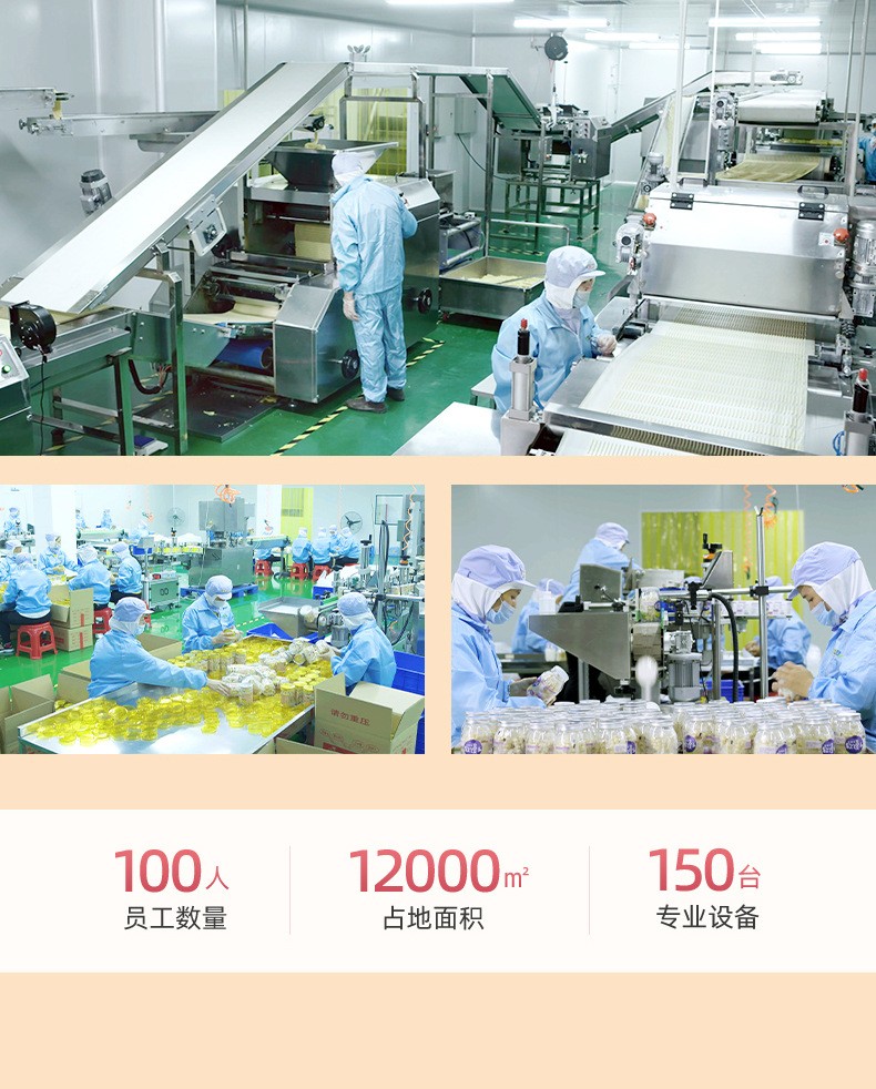 漳州童世界食品有限公司主營一站式代加工OEM業(yè)務(wù),致力于健康兒童食品、功能性代餐食品、凍干燕窩的研發(fā)與生產(chǎn),公司占地面積12000平方米,始終秉承已科技為先導(dǎo)、以先進(jìn)的現(xiàn)代化管理依托、已“顧客滿意第一”為宗旨的經(jīng)營方針、致力發(fā)展成為一家研發(fā)和制造健康、美味、營養(yǎng)的食品企業(yè)。 公司的誠信、實力和產(chǎn)品質(zhì)量獲得業(yè)界的認(rèn)可。歡迎各界朋友蒞臨參觀、指導(dǎo)和業(yè)務(wù)洽談。