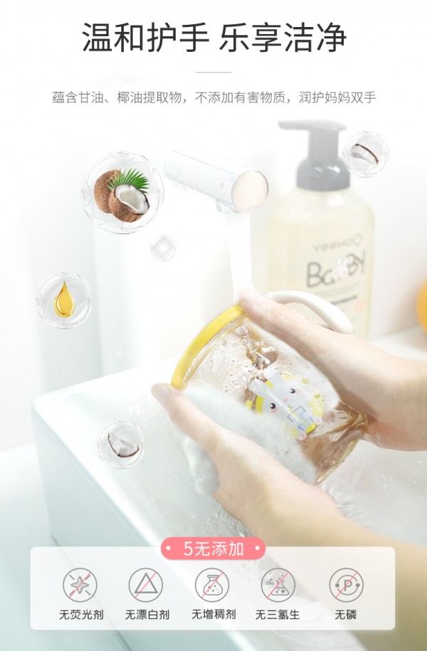 英氏嬰兒奶瓶果蔬酵素清潔泡沫蘊(yùn)含甘油、椰油等天然植物提取物,不添加熒光劑、增白劑、增稠劑、三氯生、磷等有害物質(zhì),溫和清洗更護(hù)手,悉心潤護(hù)媽媽雙手,讓媽媽樂享潔凈。