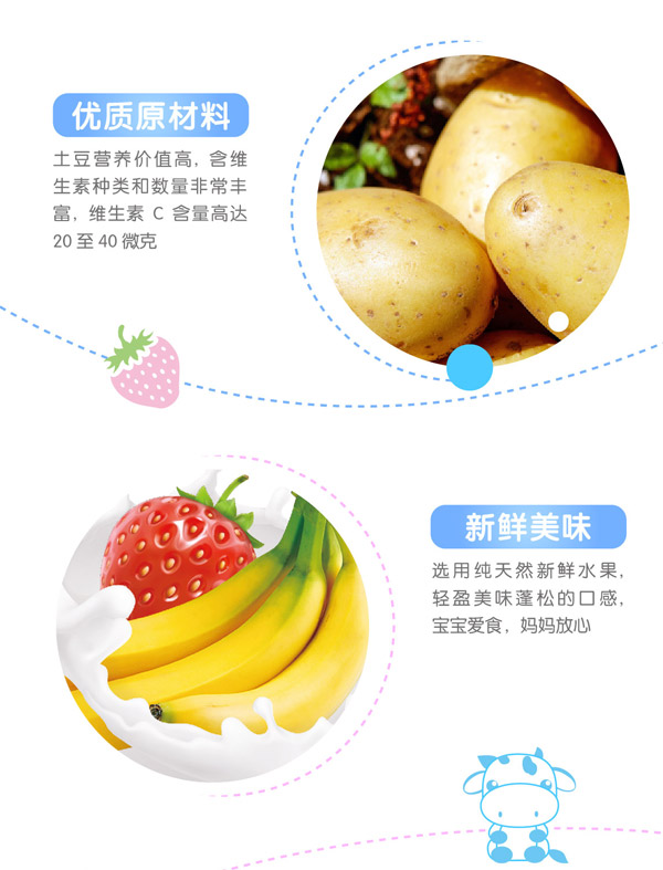 3.甄選優(yōu)質(zhì)新鮮的馬鈴薯淀粉以及新鮮奶源,保護(hù)營(yíng)養(yǎng)成分新鮮不流失;