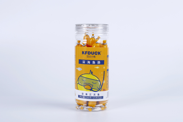 功夫小鴨深海蝦腸魚腸三文魚鱈魚罐裝小零食180g產(chǎn)品展示