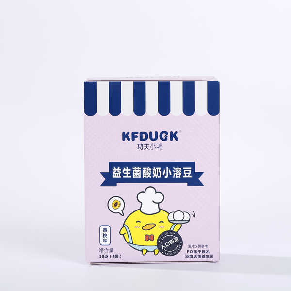 功夫小鴨益生菌酸奶小溶豆黃桃藍(lán)莓草莓味盒裝試用裝18g產(chǎn)品展示
