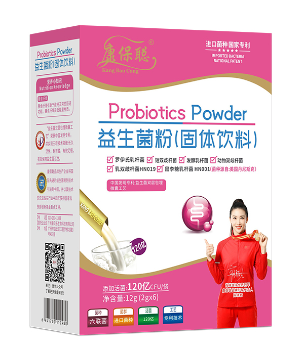 康保聰益生菌粉系列產(chǎn)品,擁有國(guó)家發(fā)明,益生菌雙層包埋微囊工藝,有效保障了益生菌的活性。精選優(yōu)質(zhì)原材料,六聯(lián)益生菌,源自美國(guó)丹尼斯克,優(yōu)質(zhì)進(jìn)口菌種,特別添加120億活性益生菌,品質(zhì)保證,質(zhì)量安全。