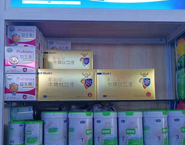 且看各大門店,“臻牛牛脾肽”產(chǎn)品的金黃色“身影”可謂隨處可見(jiàn)!放眼過(guò)去,各色陳列盡收眼底,收銀臺(tái)的“黃金地段”更是不能放過(guò),讓你走進(jìn)店門只一眼就能看到它,快速奪人眼球,可見(jiàn)其無(wú)可比擬的優(yōu)勢(shì)地位!