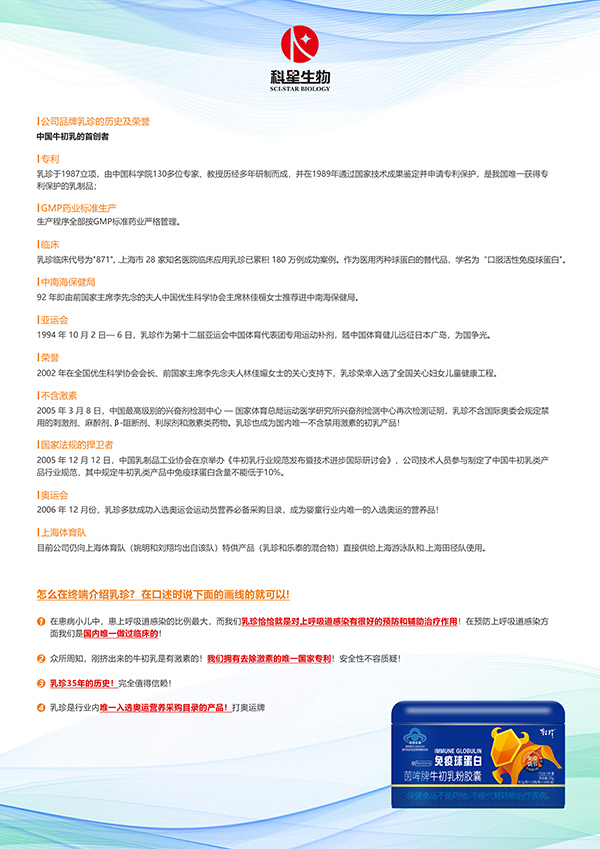 中科乳珍,中國(guó)科學(xué)院生命科學(xué)研究院研制,35年有效臨床經(jīng)驗(yàn)!民族品牌,藍(lán)帽品質(zhì)!每粒含免疫球蛋白36mg,遠(yuǎn)高于市場(chǎng)上的同類(lèi)產(chǎn)品,特采用ASP活性物質(zhì)保鮮技術(shù),為免疫力低下人群精心研發(fā)設(shè)計(jì)!嬰幼兒、兒童、成人均可食用,經(jīng)動(dòng)物及功能實(shí)驗(yàn)評(píng)價(jià),具有免疫調(diào)節(jié)的保健功能!