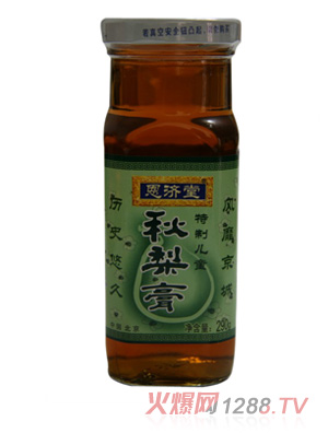 恩濟堂是京城知名,由清康熙年間四大御醫(yī)之首劉恩濟創(chuàng)立。恩濟堂秋梨膏是劉恩濟將秘方帶出宮廷,作為傳家秘方,延續(xù)至今。當(dāng)代的“恩濟堂”品牌的秋梨膏,是利用現(xiàn)代化加工設(shè)備,采用世代相傳的傳統(tǒng)加工工藝而生產(chǎn)的健身佳品,是特別有助于去火、降燥、潤肺、止咳的現(xiàn)代生活必備保健良品。